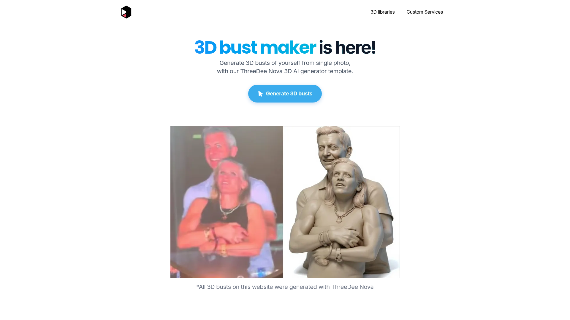 Transforme uma única foto em um busto imprimível em 3D em minutos. Envie uma imagem, e nossa IA gera um arquivo 3D detalhado, pronto para impressão. Sem necessidade de escaneamentos ou fotos multi-ângulo. Perfeito para presentes, lembranças e projetos 3D personalizados.