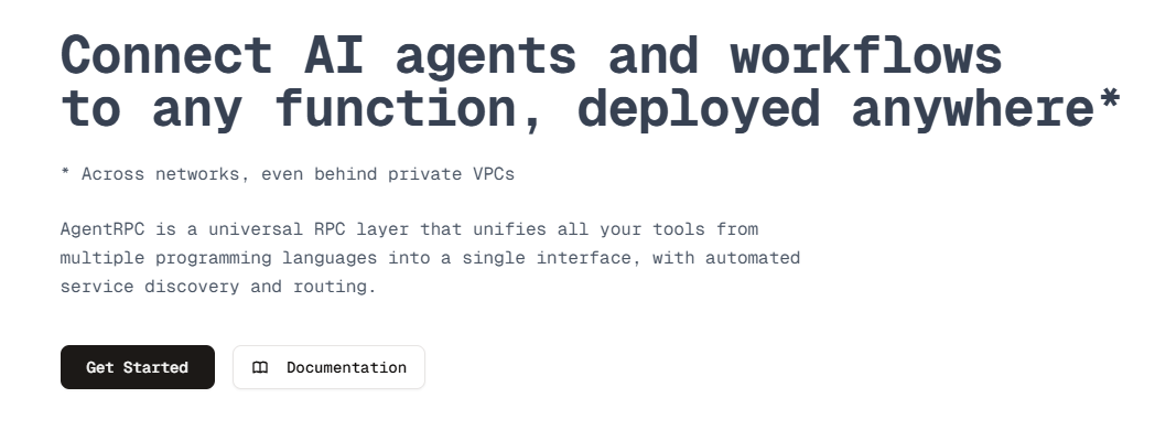 Imagine ter uma ferramenta que permite que seus agentes de Inteligência Artificial (IAs) se conectem e interajam com diversas funções e serviços, não importa onde eles estejam hospedados. É exatamente isso que o AgentRPC faz! Ele funciona como uma camada universal de "Chamada de Procedimento Remoto" (RPC), facilitando a comunicação entre seus agentes de IA e fluxos de trabalho com funções espalhadas por diferentes redes e ambientes.