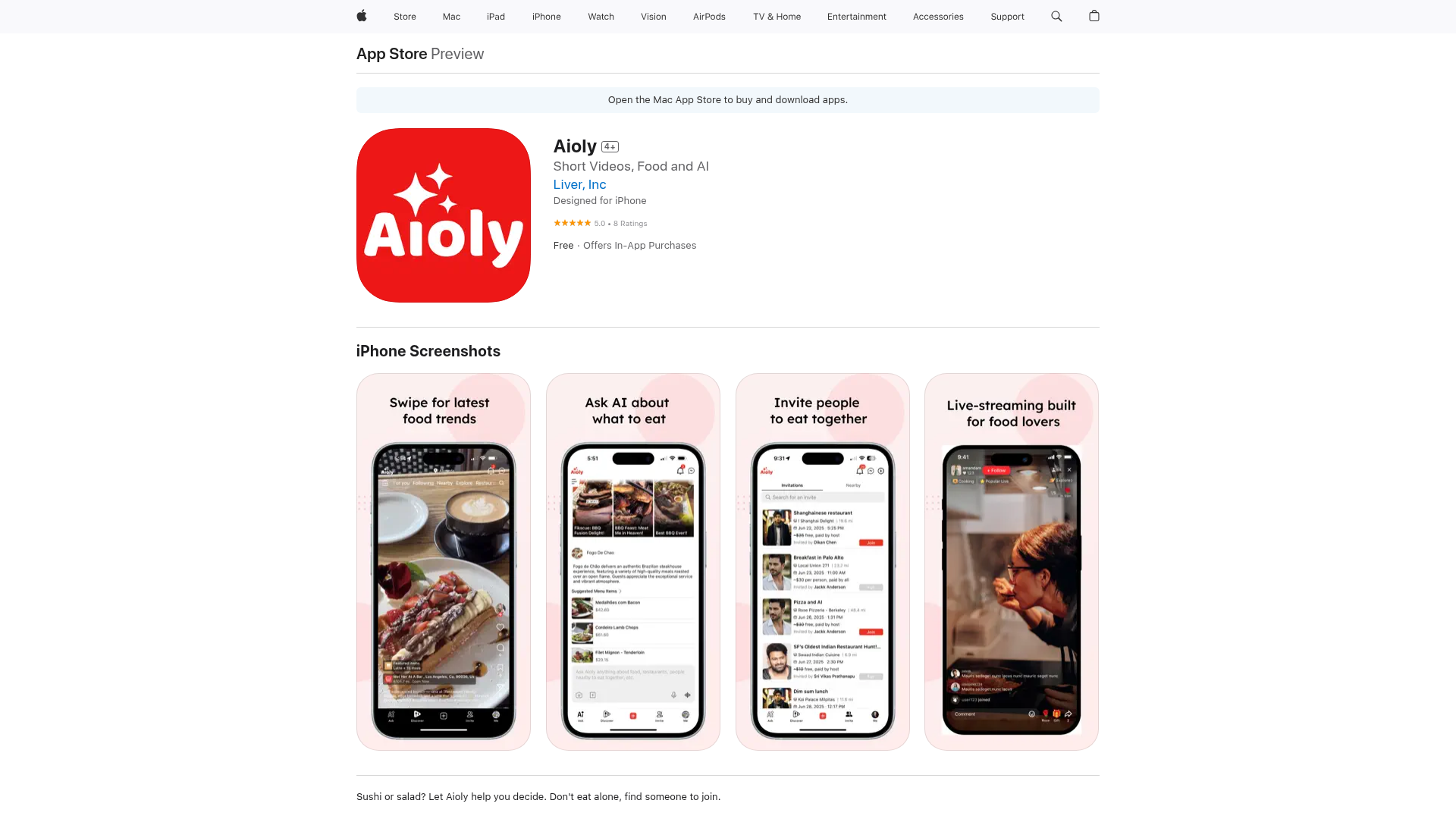 Aioly é um aplicativo de vídeos curtos com inteligência artificial, mas só para comida. Navegue pelas últimas tendências gastronômicas, pergunte à IA o que e onde comer, ou conecte-se com pessoas em torno de uma refeição. Não coma sozinho. Crie ou participe de convites para comerem juntos. Descubra comida e conecte-se através da comida.
