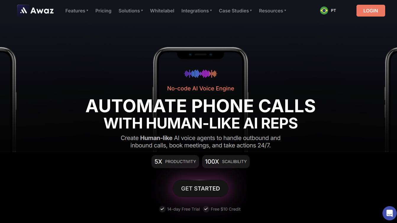 Cansado de perder chamadas e lidar com agendamentos complicados? Apresentamos o Awaz, um assistente virtual da Awaz.ai que usa inteligência artificial para automatizar suas chamadas telefônicas, agendamentos e suporte ao cliente 24 horas por dia, 7 dias por semana. Imagine ter um atendente sempre disponível, capaz de conversar com seus clientes em 30 idiomas diferentes!
