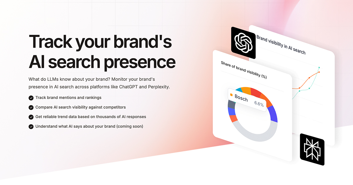 BrandBeacon.AI é uma plataforma de monitoramento de marca e rastreamento de buscas em IA que ajuda empresas a monitorar sua presença em plataformas de busca de IA como ChatGPT e Perplexity. A ferramenta rastreia menções à marca em resultados de busca de IA, compara a visibilidade com a dos concorrentes e fornece dados de tendências com base em milhares de respostas de IA. À medida que mais consumidores migram para o uso de ferramentas de busca baseadas em IA, o BrandBeacon.AI permite que equipes de marketing e gerentes de marca entendam como estão sendo representados nesses novos canais, ajudando-os a adaptar suas estratégias para manter a visibilidade e gerenciar a percepção da marca nesse cenário de busca em evolução.