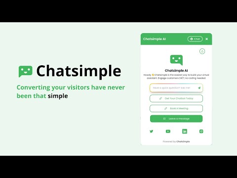Chatsimple é um chatbot de IA projetado para aprimorar o engajamento de visitantes em websites, atuando como um co-piloto virtual para tarefas como vendas, suporte, geração de leads...