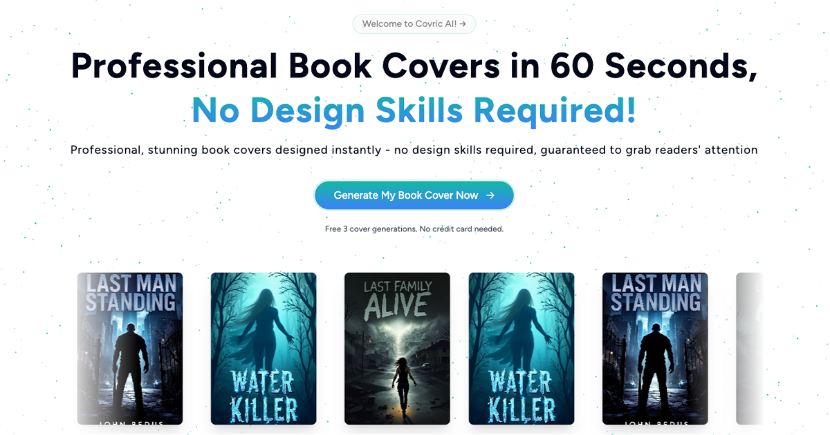 Cansado de gastar tempo e dinheiro com designers gráficos para criar a capa perfeita para seu livro? Apresentamos o Covric, uma ferramenta inovadora que utiliza inteligência artificial para gerar capas de livros de qualidade profissional em questão de segundos, sem que você precise ter qualquer conhecimento em design!