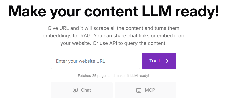 Transforma conteúdo de websites em interfaces de chat interativas.