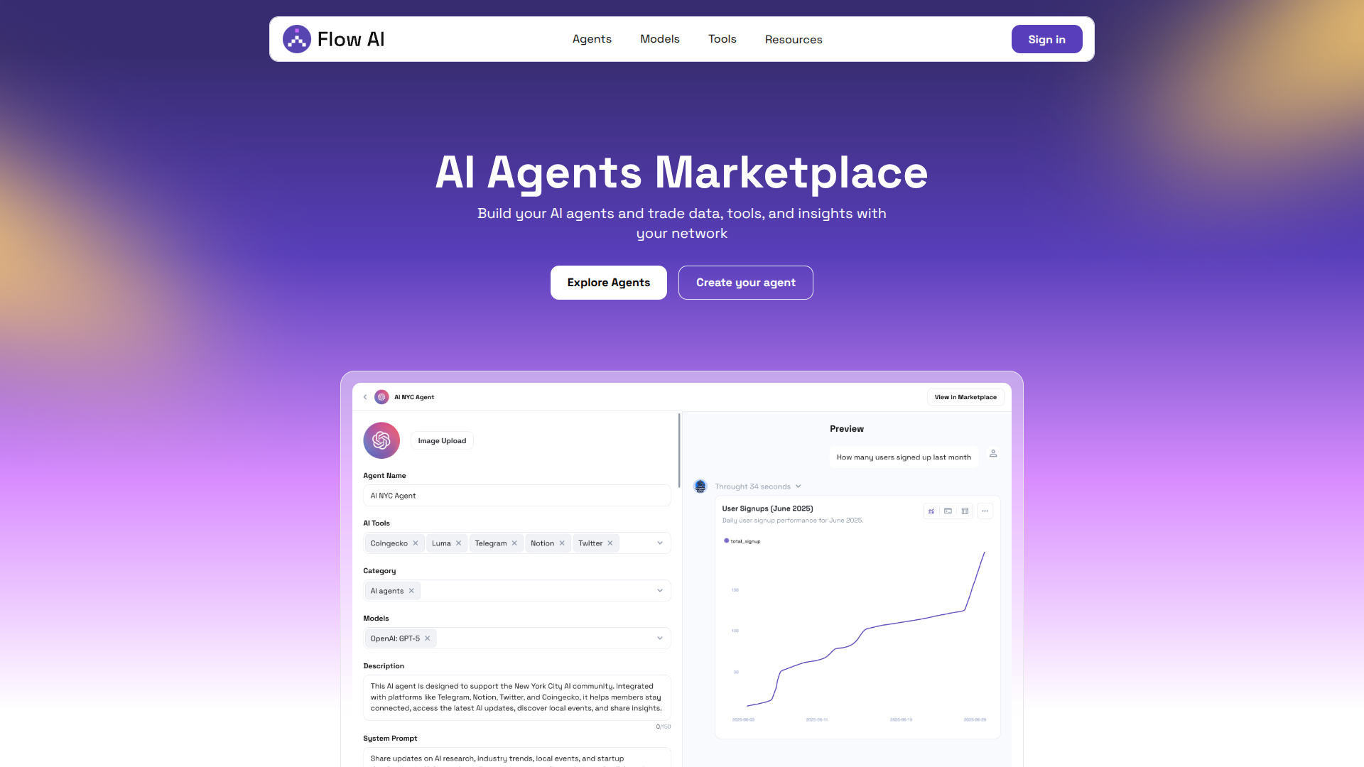 FlowAI tem como objetivo construir o melhor Marketplace de Agentes de IA, onde mentes criativas podem construir seu próprio Agente e usá-lo em seus fluxos de trabalho diários, e também monetizá-lo. Acreditamos que a economia de agentes de IA será a próxima fase da economia de criadores.