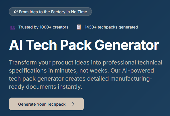 Cansado de criar tech packs manualmente? O Genpire é a solução! Essa ferramenta inovadora, impulsionada por inteligência artificial, transforma suas ideias de produtos, esboços ou descrições em especificações de fabricação completas e detalhadas. Imagine poder converter um simples rascunho em um tech pack pronto para enviar para a fábrica, tudo em questão de minutos!