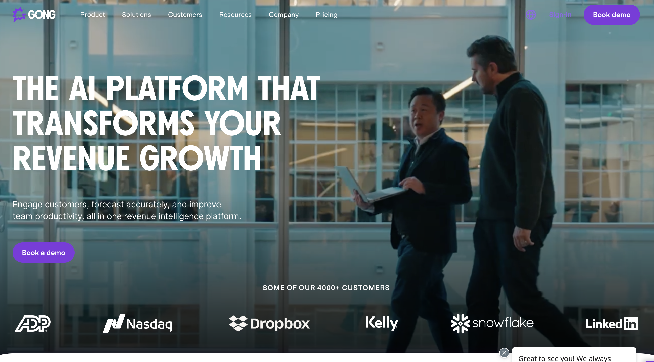 Plataforma revolucionária de inteligência de receita alimentada por IA. Economize tempo, aumente a produtividade e potencialize suas vendas com Gong!