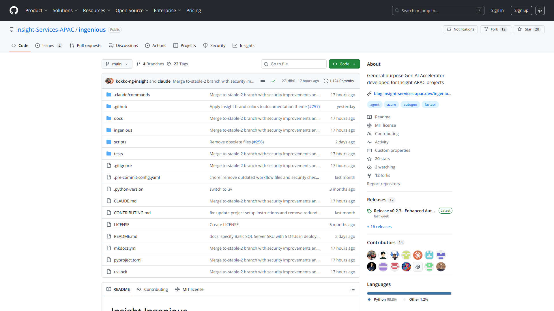 Da nossa página no PyPI, Ingenious é "uma biblioteca Python de nível empresarial para configurar rapidamente APIs para interagir com Agentes de IA, apresentando integrações estreitas com serviços Microsoft Azure e utilitários abrangentes para depuração e personalização."