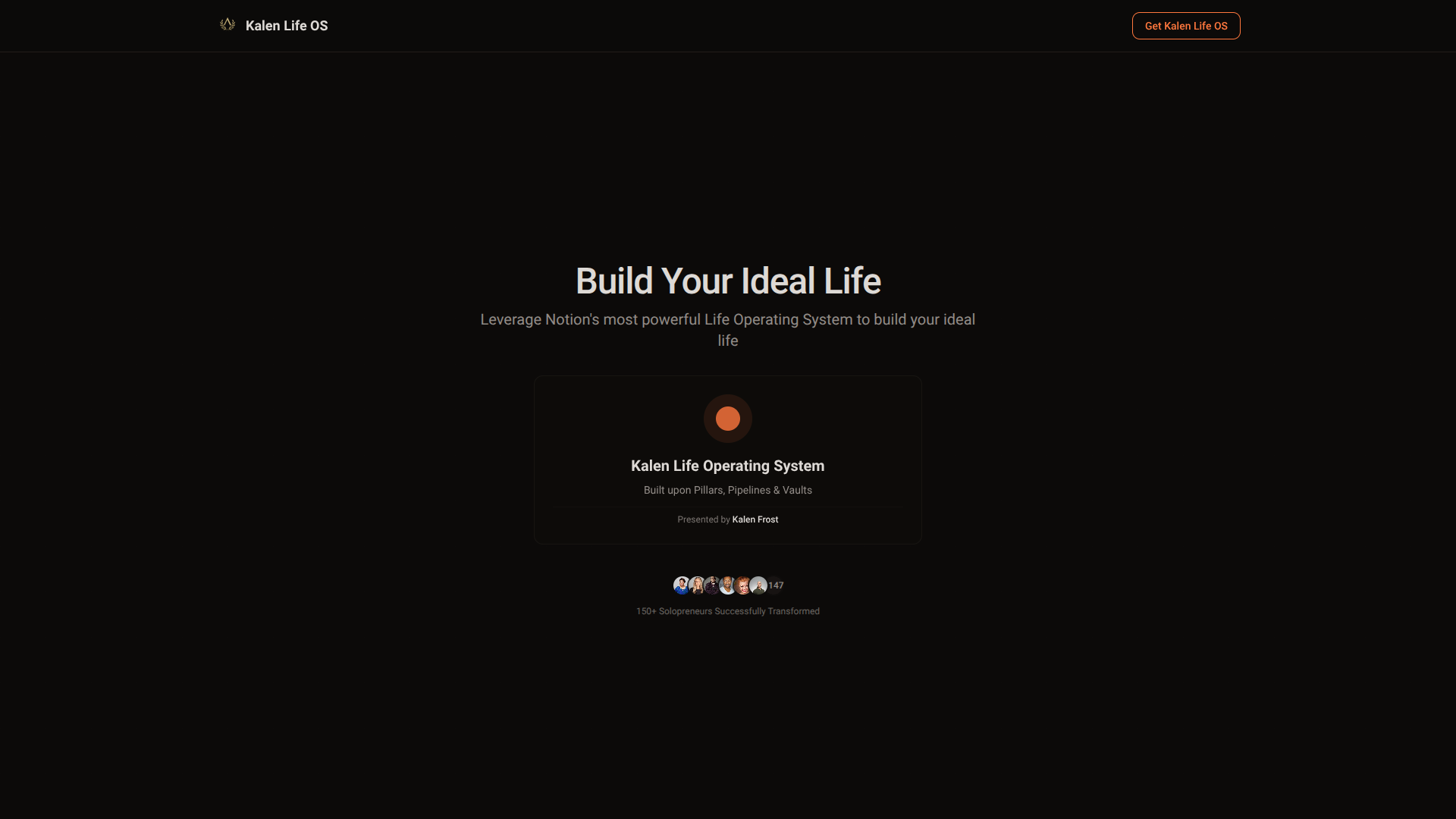 Kalen Life OS é um sistema para fundadores que vai te ajudar a gerenciar 12 áreas da vida: clientes, criação de conteúdo em 9 plataformas, desenvolvimento de produto de forma estruturada, casa, família, círculo social, finanças, saúde, viagens, entretenimento, aprendizado e caráter.