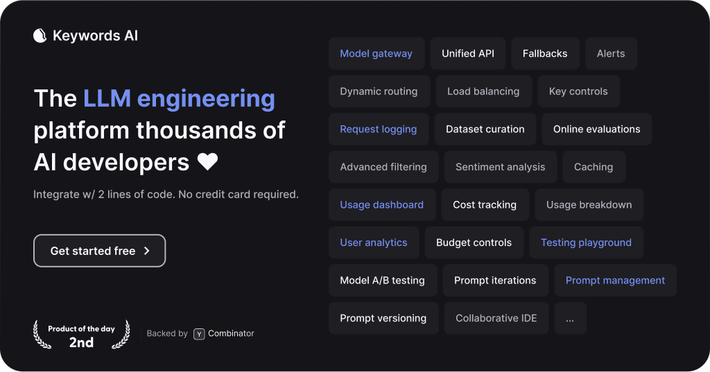 Se você é um desenvolvedor, cientista de dados, profissional de marketing ou qualquer pessoa interessada em explorar o poder da IA generativa, a Keywords AI pode te ajudar a transformar suas ideias em realidade de forma mais eficiente e com menos complexidade. A plataforma oferece um modelo "freemium", permitindo que você comece a experimentar e construir sem custos iniciais, escalando conforme suas necessidades crescem. Keywords AI te capacita a focar na inovação, enquanto cuida da infraestrutura e das complexidades técnicas.