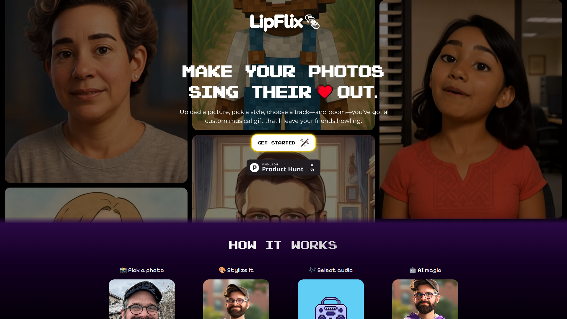 LipFlix transforma uma foto em um vídeo dublado usando IA. Adicione uma voz ou música e crie algo estranho, legal ou hilário em segundos. Sem necessidade de câmera, apenas seu rosto e um pouco de imaginação.