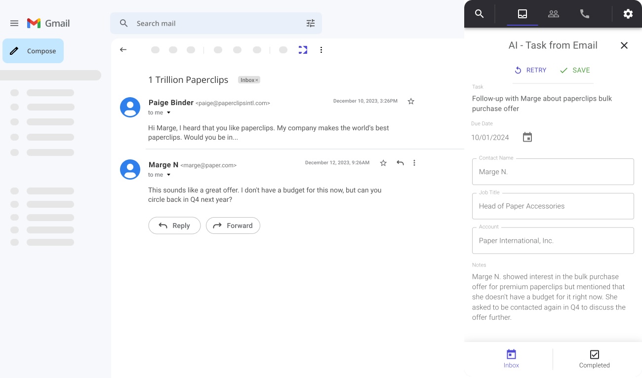 Cansado de perder tempo organizando tarefas que surgem de e-mails e ligações? O Nexto é uma extensão para Chrome que usa inteligência artificial para simplificar sua vida! Ele analisa automaticamente suas conversas por e-mail e resumos de chamadas telefônicas, identificando ações pendentes e criando tarefas de acompanhamento instantaneamente.