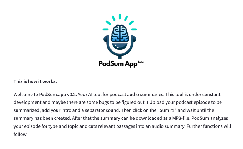 Cansado de não ter tempo para ouvir todos os podcasts que te interessam? Apresentamos o PodSum, uma ferramenta de IA que resume episódios de podcast para você! É simples: você envia o arquivo de áudio, adiciona um som de introdução e separador (para melhor segmentação), e o PodSum usa inteligência artificial para gerar um resumo conciso do conteúdo.