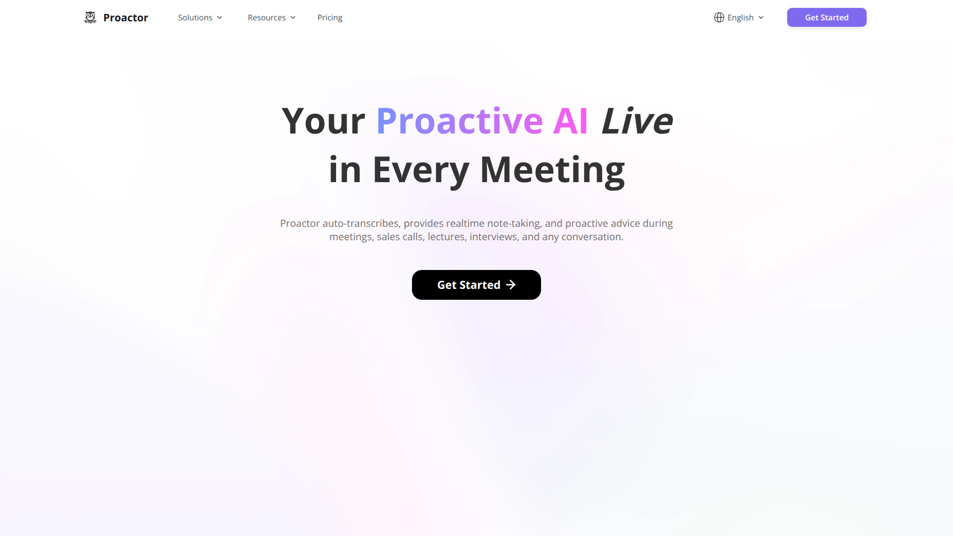 Proactor sabe suas necessidades antes que você pergunte, entrega transcrições automáticas, anotações inteligentes e conselhos proativos durante reuniões, chamadas de vendas, palestras, entrevistas e qualquer conversa.