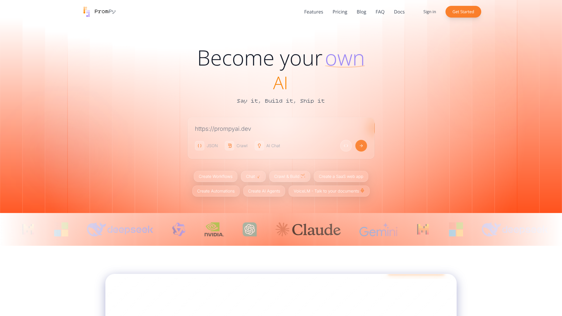 Gere fluxos de trabalho de IA, prompts e insights em segundos. Destaque e Consulte documentos, converse com mais de 50 modelos de IA, rastreie e construa clones de websites, obtenha o esquema instantaneamente, e até converse com suas notas usando VoiceLM. PromPy torna a pesquisa de IA, a codificação e a automação perfeitas.