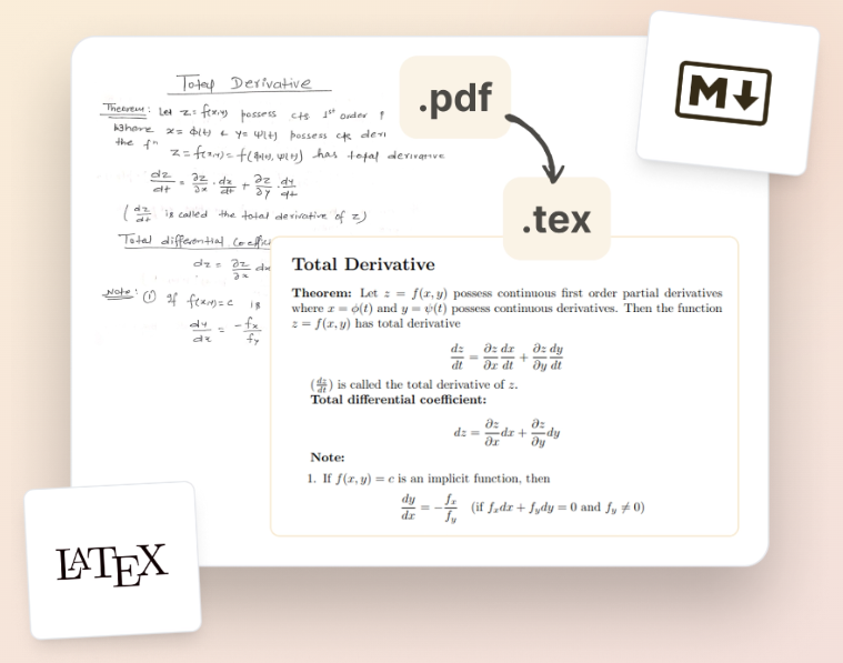 Cansado de digitar suas anotações manuscritas em PDF? O ScribeFast é a solução ideal! Essa ferramenta inteligente, impulsionada por inteligência artificial, converte seus PDFs com anotações em documentos editáveis nos formatos LaTeX e Markdown. Imagine transformar suas complexas equações matemáticas, diagramas e textos manuscritos em arquivos digitais prontos para edição e compartilhamento.