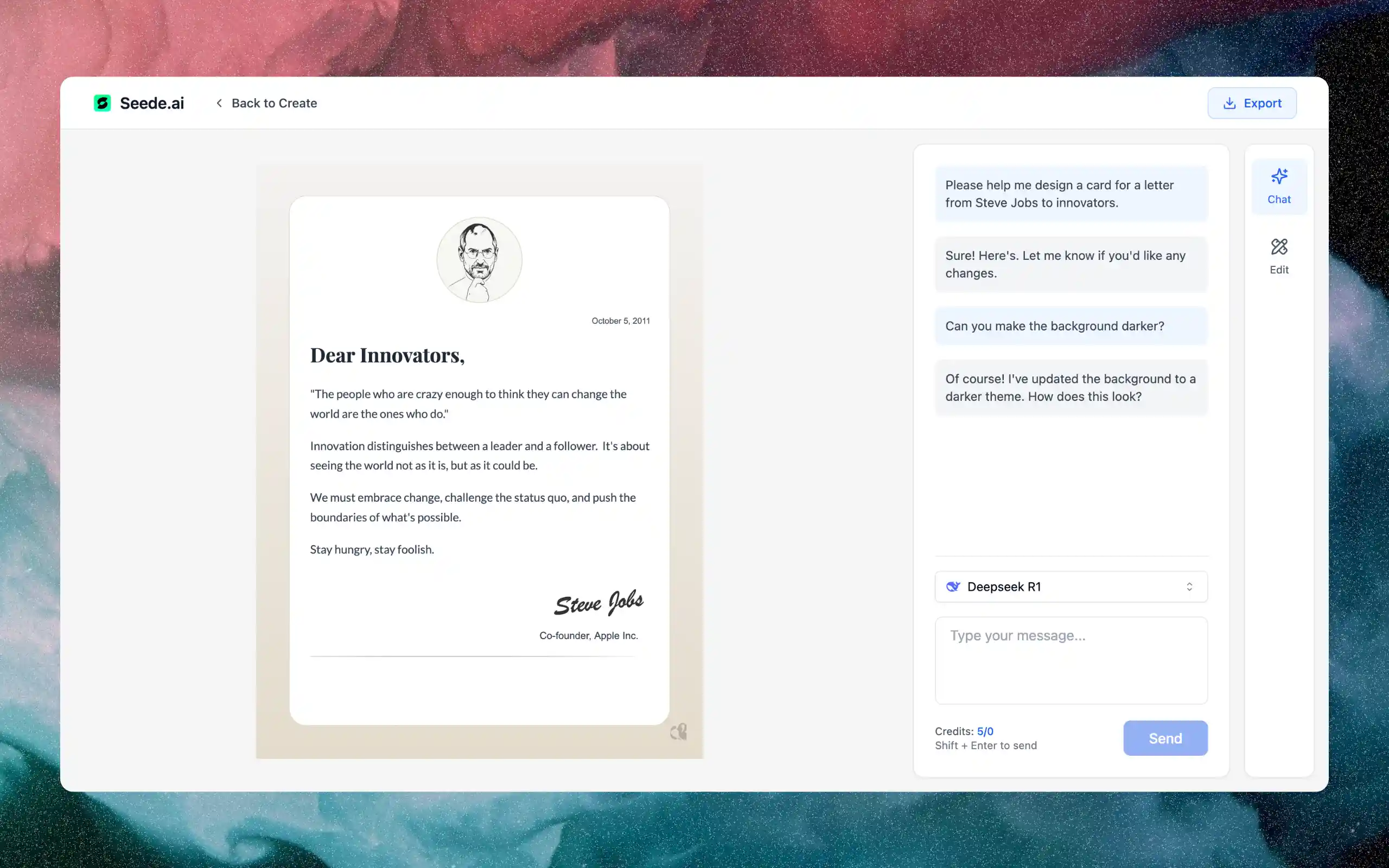 Se você é um empreendedor, profissional de marketing, criador de conteúdo ou simplesmente alguém que precisa de designs atraentes para suas atividades, a Seede AI é a solução ideal. Apesar de ser uma ferramenta paga, a Seede AI oferece um excelente custo-benefício, liberando você da necessidade de contratar designers ou aprender softwares complexos. Experimente a Seede AI e descubra como a inteligência artificial pode impulsionar sua criatividade e comunicação visual!