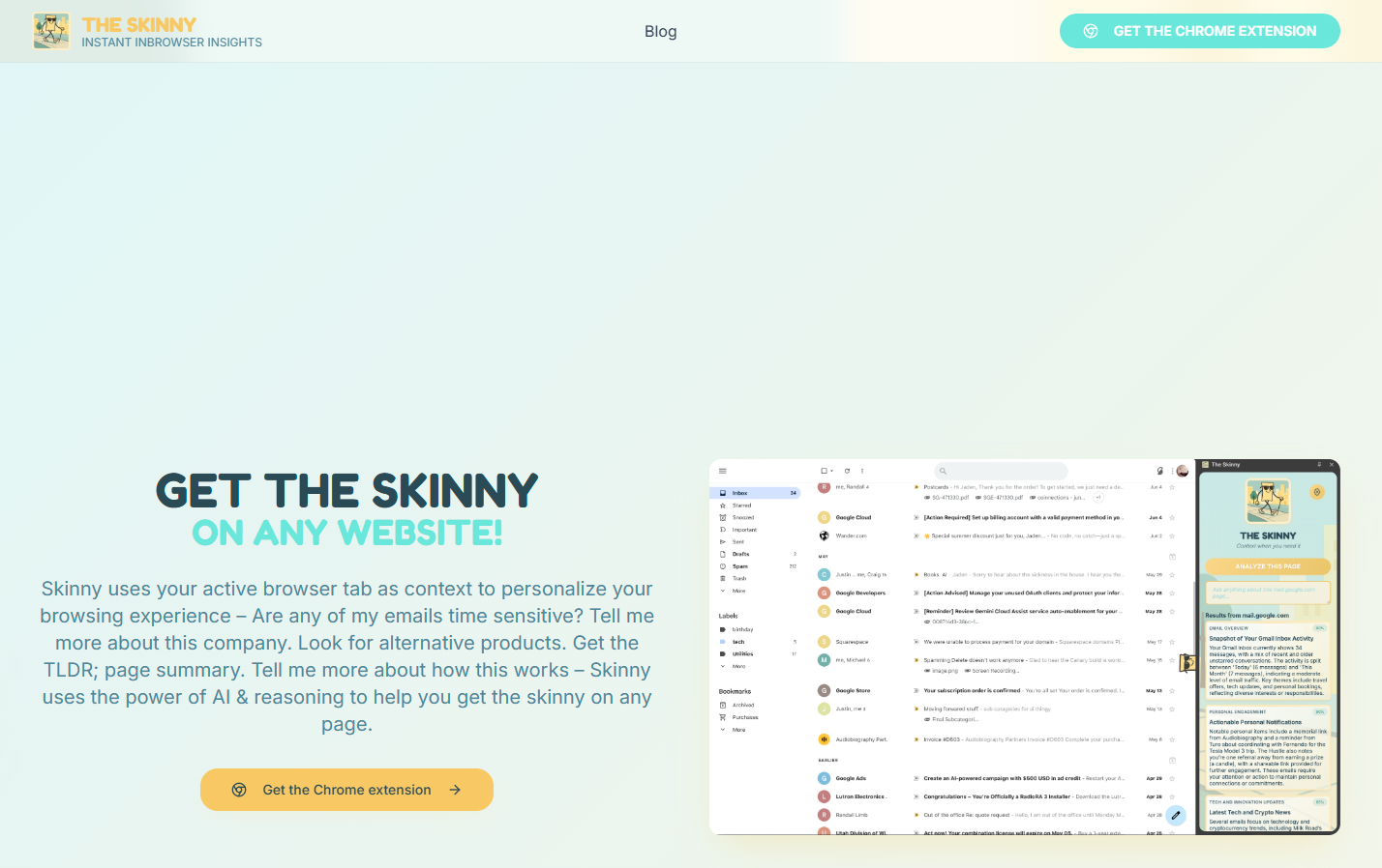 The Skinny 🔎: IA que usa o contexto da aba ativa para pesquisar informações ℹ️ sobre empresas, presença social e até itens da página (ex: roupas 👗). Com Grok4, oferece respostas formatadas e raciocínio avançado. Ideal para pesquisa rápida e análise de conteúdo! 🚀