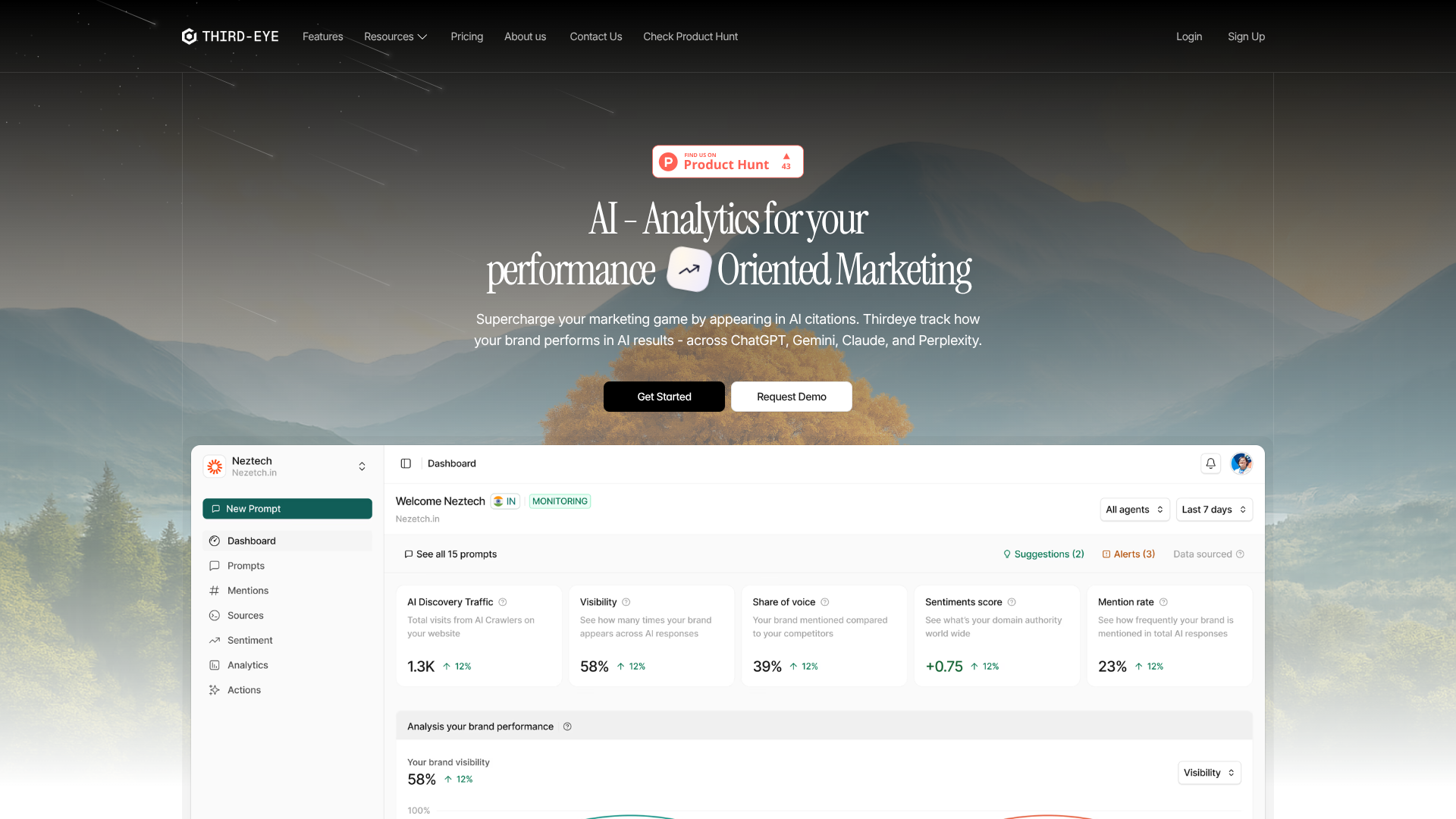 IA é a nova busca. Thirdeye ajuda sua marca a se manter descoberta monitorando como ChatGPT, Claude, Gemini e Perplexity mencionam você. Obtenha insights sobre o sentimento, benchmarks de concorrentes e alertas em tempo real quando as narrativas mudam.