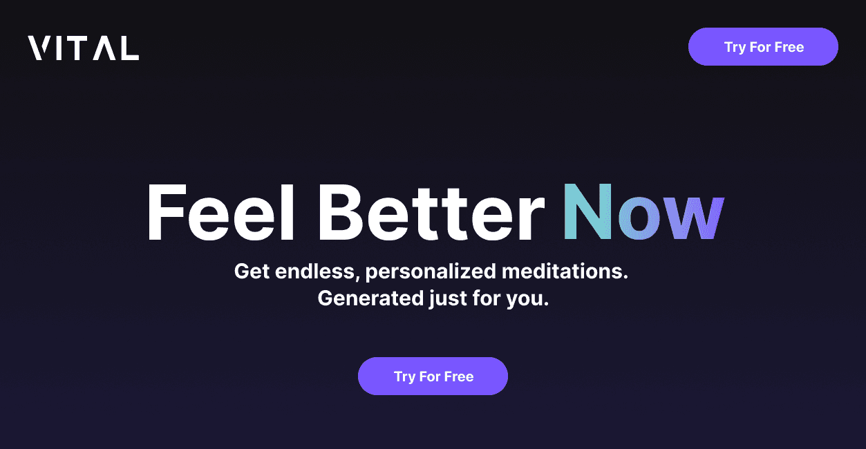 Vital é um aplicativo de meditação personalizado, com tecnologia de IA, projetado para fornecer aos usuários sessões de meditação guiadas por áudio, adaptadas às suas necessidades específicas e...