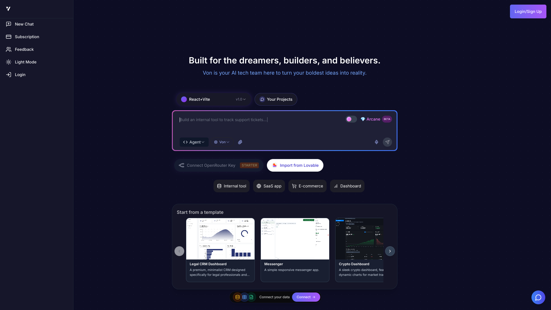 Von.dev é uma ferramenta de IA que te ajuda a criar landing pages e sites otimizados para conversão de forma incrivelmente rápida e fácil. Se você está cansado de gastar horas projetando e ajustando seus sites, essa ferramenta é para você!
