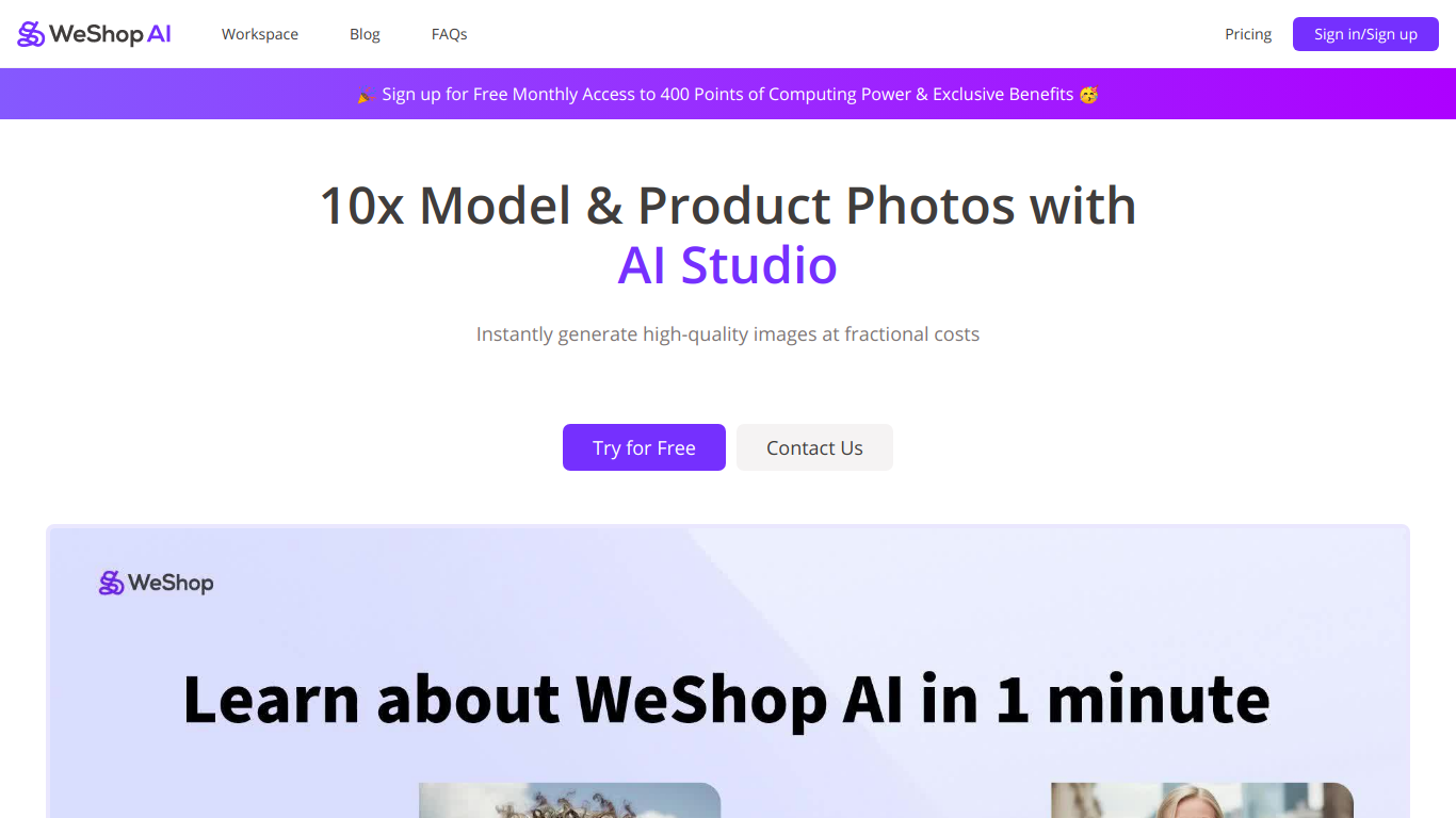 WeShop: IA cria imagens de qualidade a custos baixos. Versátil, diverso e econômico. Tenha fotos incríveis sem estúdio ou modelos. Leia mais!