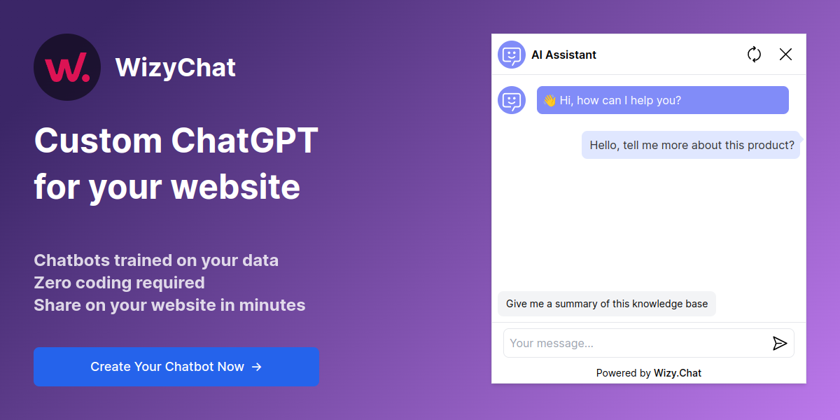 **WizyChat: Crie chatbots inteligentes personalizados com seus próprios dados**